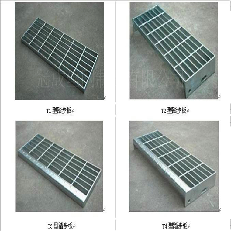 平台踏步板根据安装固定方式有无前护板和,可分为:T1型踏步板、T2型踏步板、T3型踏步板、T4型踏步板。