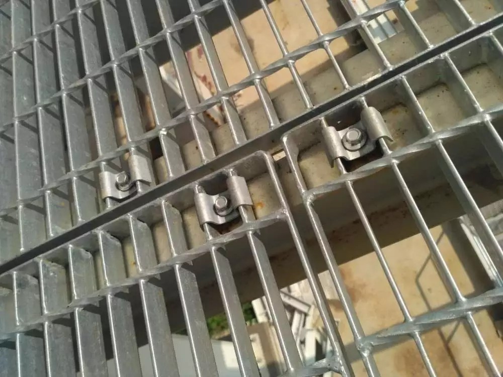 钢格板固定方法:可选用焊接和安装夹紧固两种方法。焊接的优点是固定,不会松脱;安装夹的优点是不破坏热浸锌层及拆卸方便。不用下夹,直接将螺钉头倒焊在梁上,保证钢格板不会因安装夹松脱而从梁上滑落。