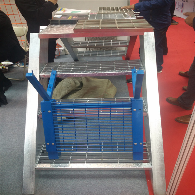 楼梯钢格板又叫楼梯踏步板,楼梯钢格板是由钢格板加工而成的(钢格板是用扁钢按照一定的间距和横杆进行交叉排列,并且焊接成中间带有方形格子的一种钢铁制品)。该产品表面一般用热镀锌、电镀锌处理。